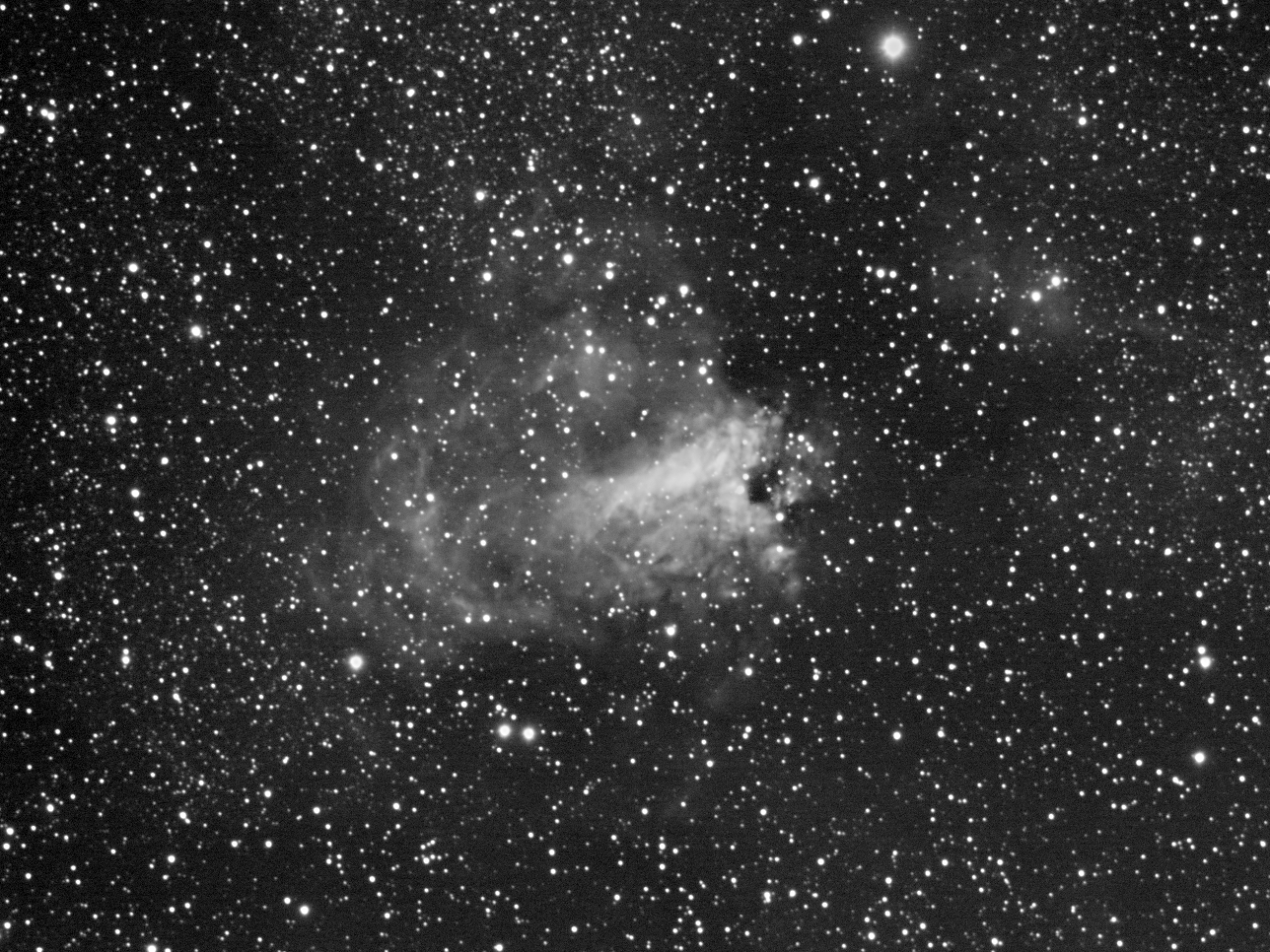 Autoguiding mit DMK 21AU04.AS und PHD2, 26x300s belichtet; Der Nebel beinhaltet den offenen Sternhaufen NGC 1624 aus heißen jungen Sternen, die den Nebel zum Leuchten anregen. Darunter befindet sich der Stern NGC 1624-2 oder TYC 3350-255-1 mit dem stärksten bekannten Magnetfeld eines Sterns der Spektralklasse O [1].