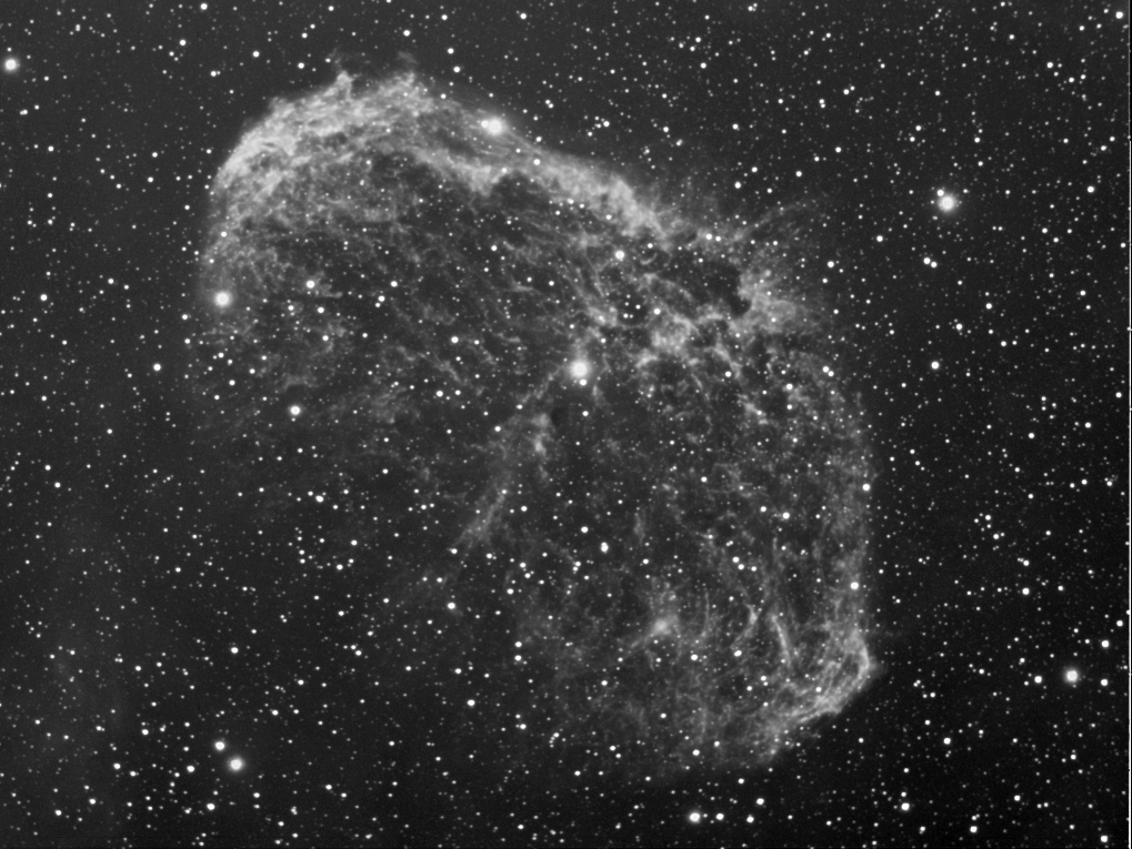 31.12.2013 19:00 - 20:18 Uhr MEZ, Teleobjektiv Canon EF f/2,8 200mm II L USM, Moravian G2-8300FW, 1x1 Binning, Astronomik 12nm H-alpha-Filter,