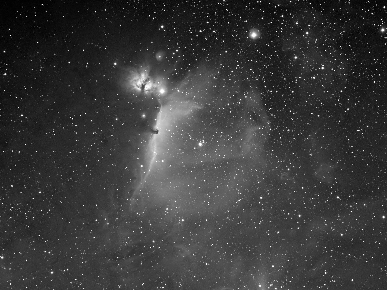 31.12.2013 21:30 - 23:30 Uhr MEZ, Teleobjektiv Canon EF f/2,8 200mm II L USM, Moravian G2-8300FW, 1x1 Binning, Astronomik 12nm H-alpha-Filter,