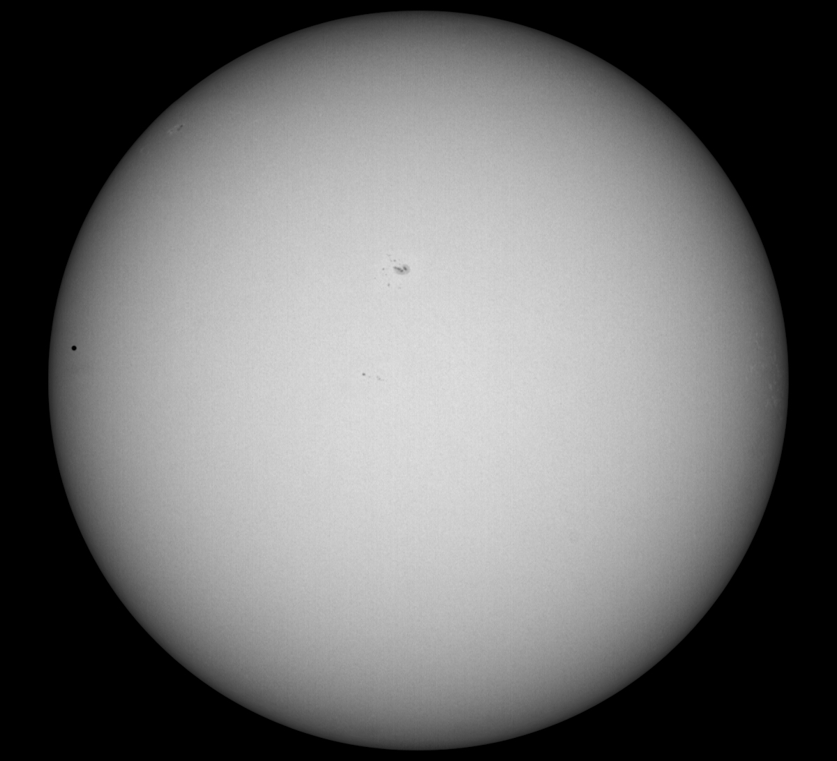 Der Eintritt Merkurs wurde mit 14"-ACF-Teleskop und der ASI 120MM Kamera mit IR-Sperrfilter bei voller Brennweite (3500mm) aufgenommen.