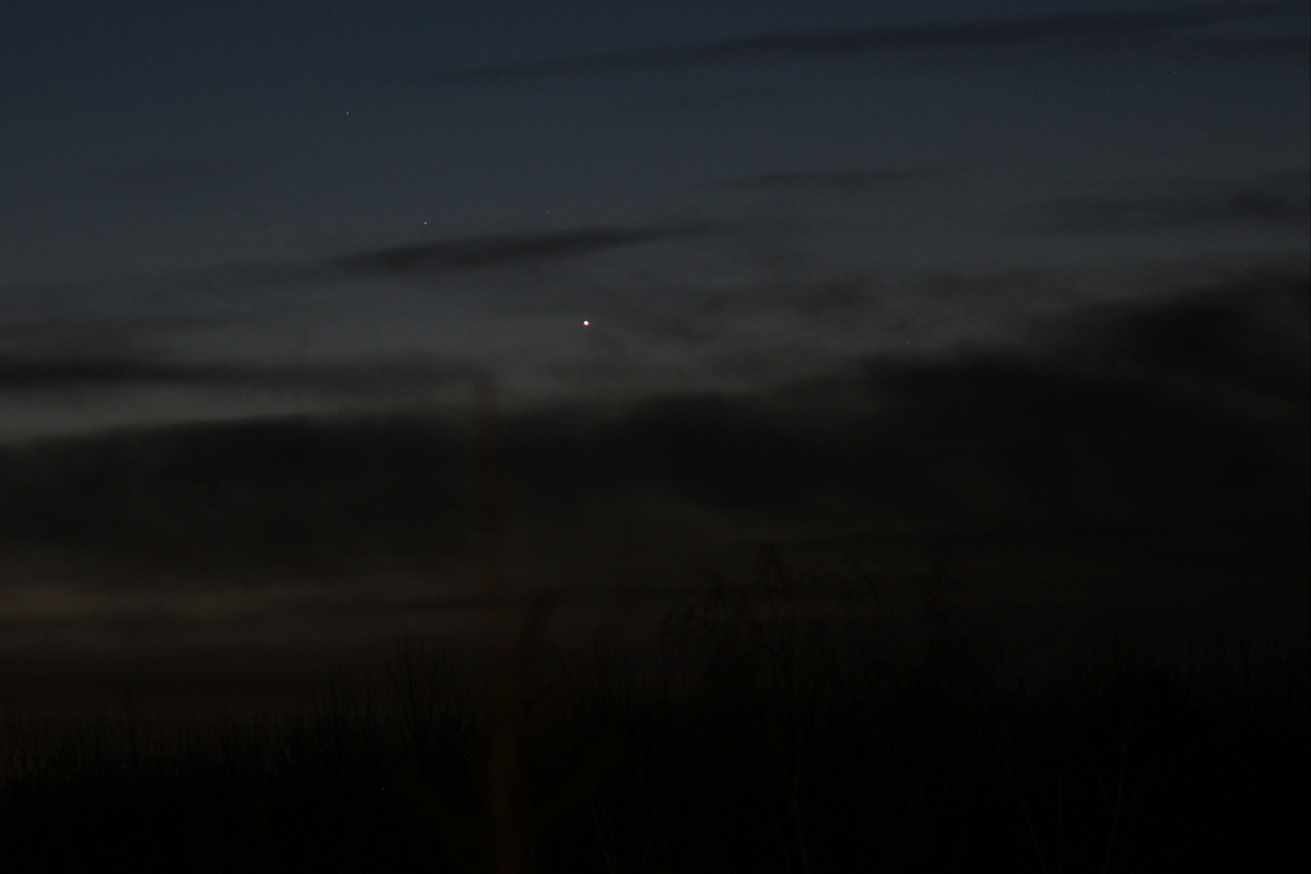 21.04.2022 21:26 MESZ, Canon EOS 700D mit EF 200 mm Objektiv, f/3,2, ISO 400, 2,5 s belichtet; Der Stern links oberhalb ist HIP 14838 (4,3 mag) und der Stern rechts am Bildrand ist HIP 13914 (4,6 mag). Die Gegend gehört zum Sternbild Widder (Aries).
