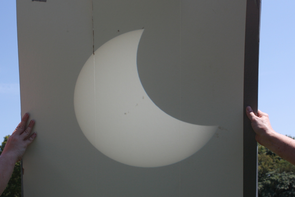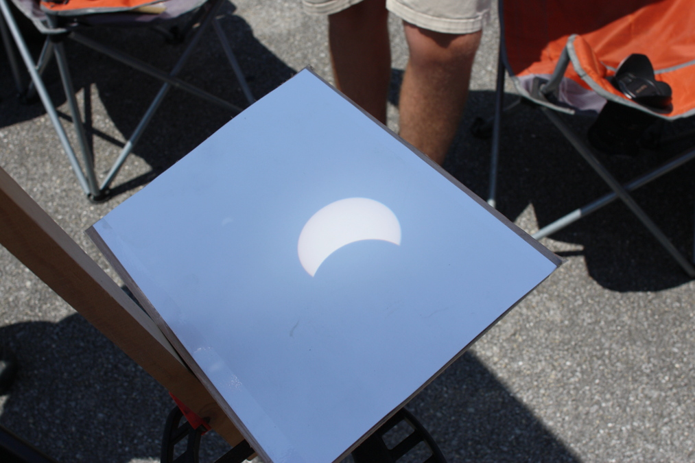 anhielt. Wenige Minuten vor Beginn des ersten Kontakts bedeckten plötzlich Wolken die Sonne. Zum Glück verschwanden diese nach ca. 20 Minuten wieder. Auf dem Platz wurde es gegen Mittag richtig heiß. Es sollen 33 °C gewesen sein, gefühlt waren es 45 °C! Viele setzten sich ins Auto