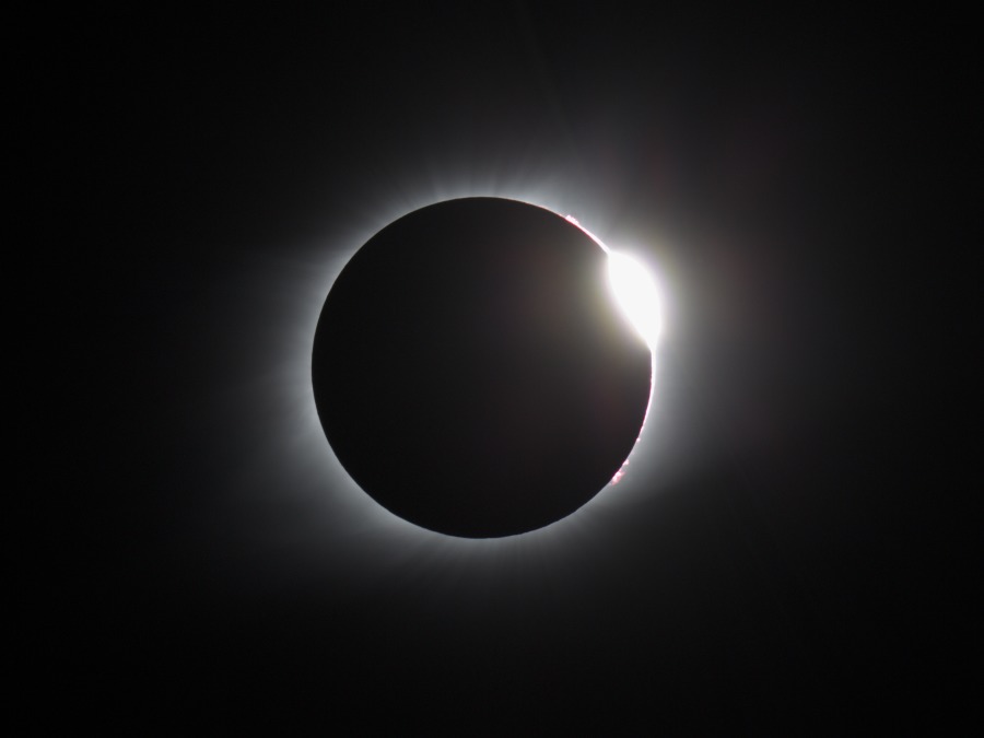Wie sich im Nachhinein herausgestellt hat, waren wir Glückspilze! In Carbondale haben im Moment der Totalität Wolken das Schauspiel verdeckt.
