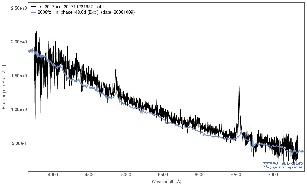 The 10th template matches to SN 1996L (IIn) with age of 59 d. SNID doesn't lead to a reliable result in this case.