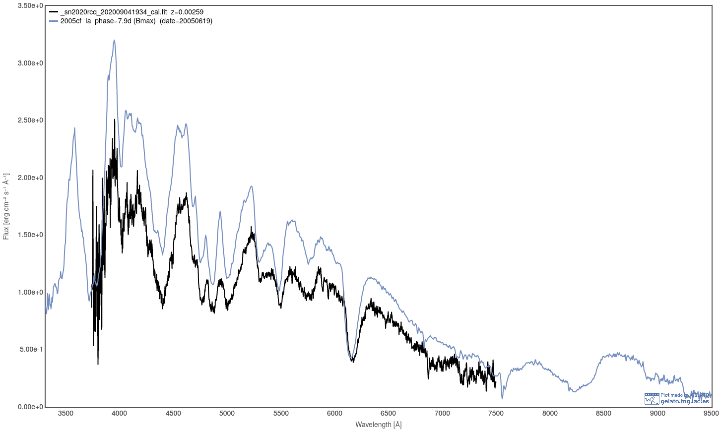 Spectrum from 2020-09-04 best matches to SN 2005cf (Ia) with an age of 7.9 d (Quality factor: 3.16)