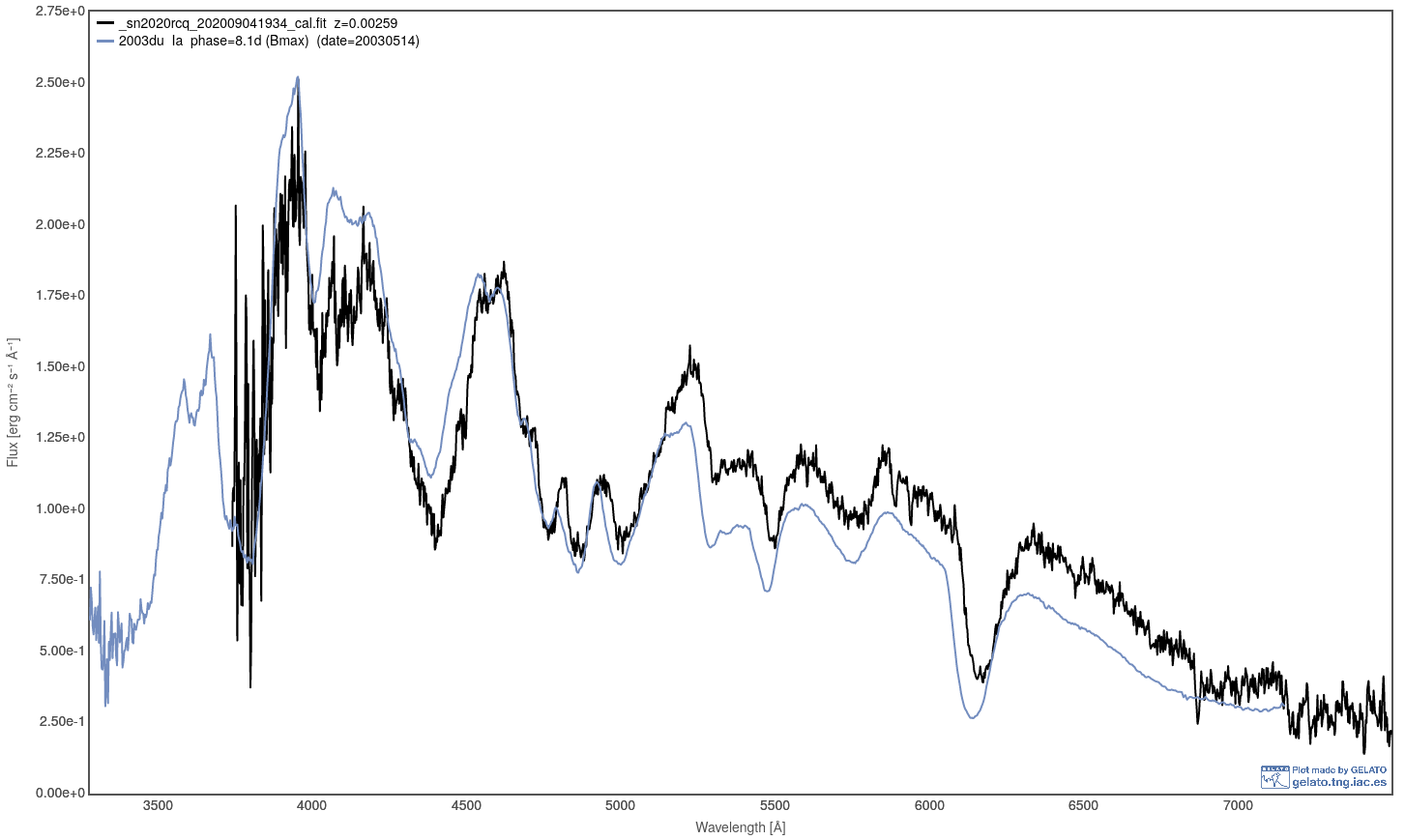 Spectrum from 2020-09-04 best matches to SN 2003du (Ia-norm) with an age of 8 d
