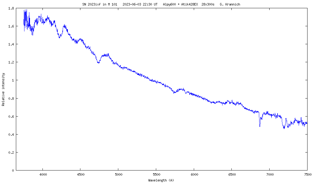 SN 2023ixf is a bright supernova in the Pinwheel galaxy M 101 in constellation UMa. With actual brightness of V~11.0 mag (end of May 2023) it is easily reachable whithin the Alpy600 spectrograph.